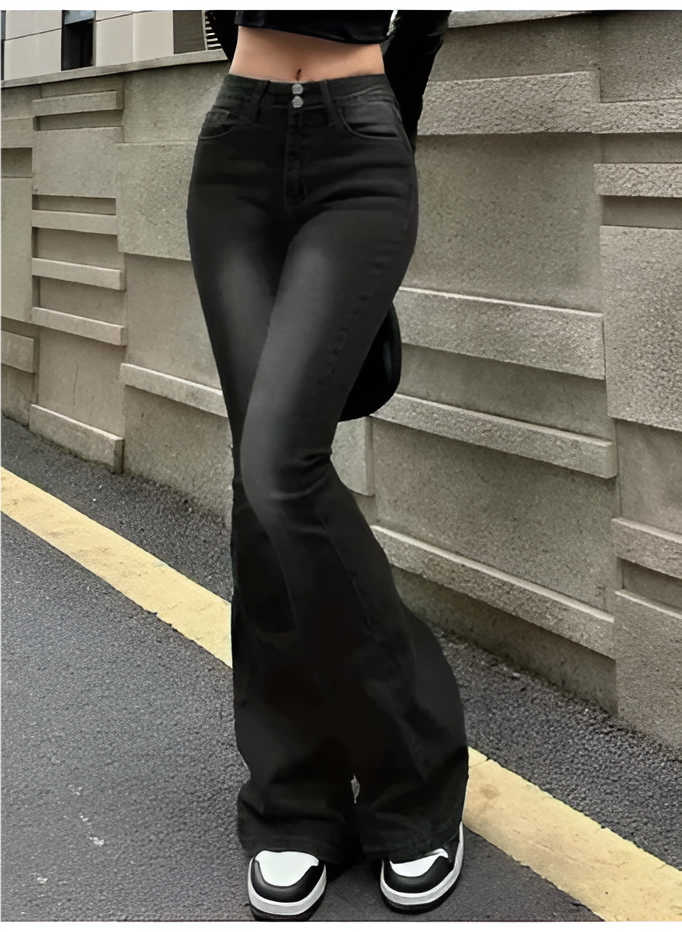 Estos jeans acampanados de cintura alta para mujer ofrecen un estilo que combina lo retro con lo contemporáneo. Su corte ajustado y diseño de pierna acampanada brindan un look distintivo y versátil para diferentes ocasiones.