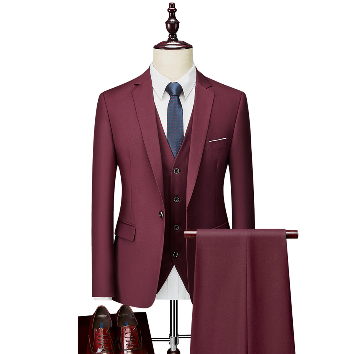 Tres piezas completas: Chaqueta, chaleco y pantalón en armonía.